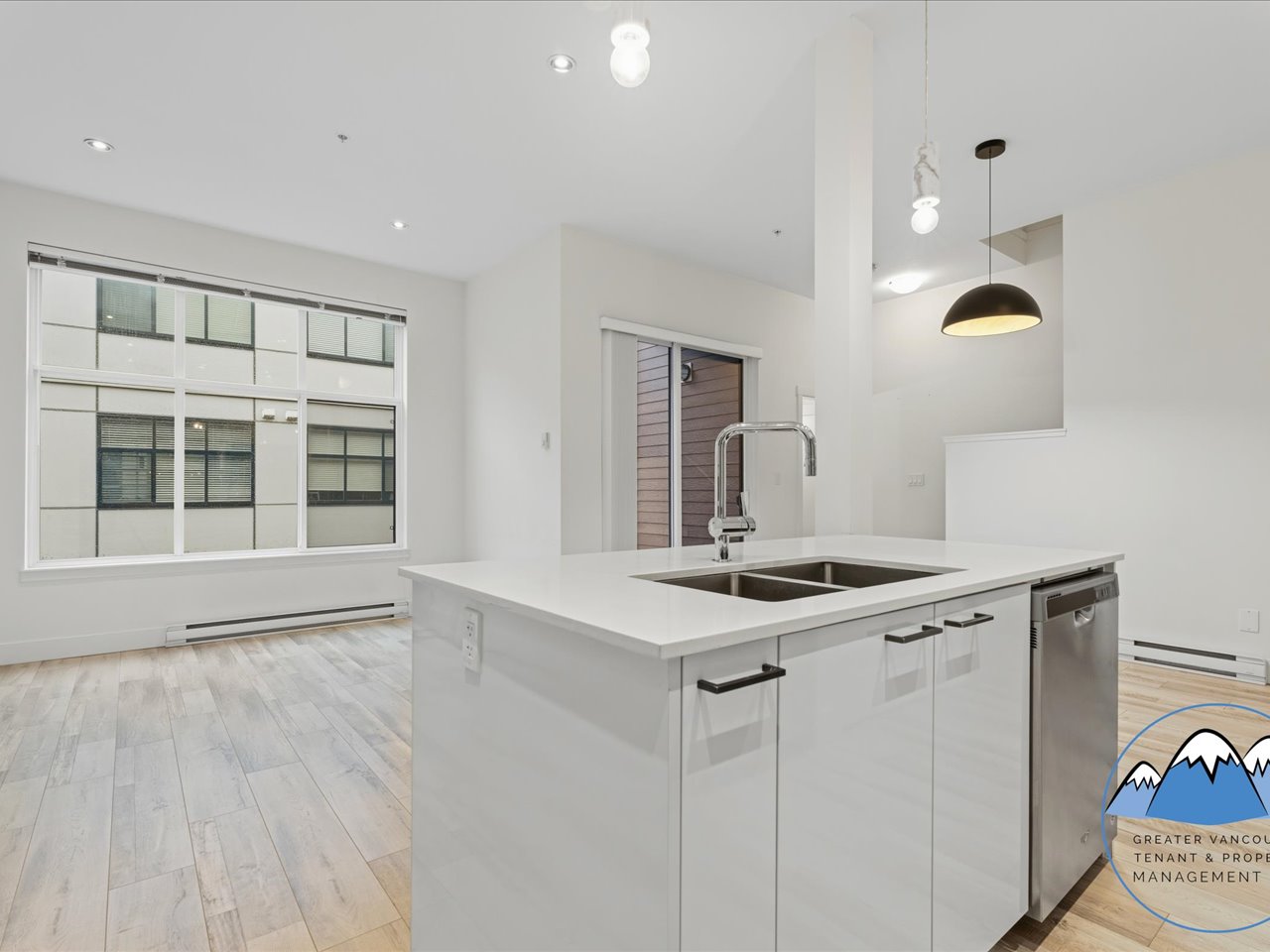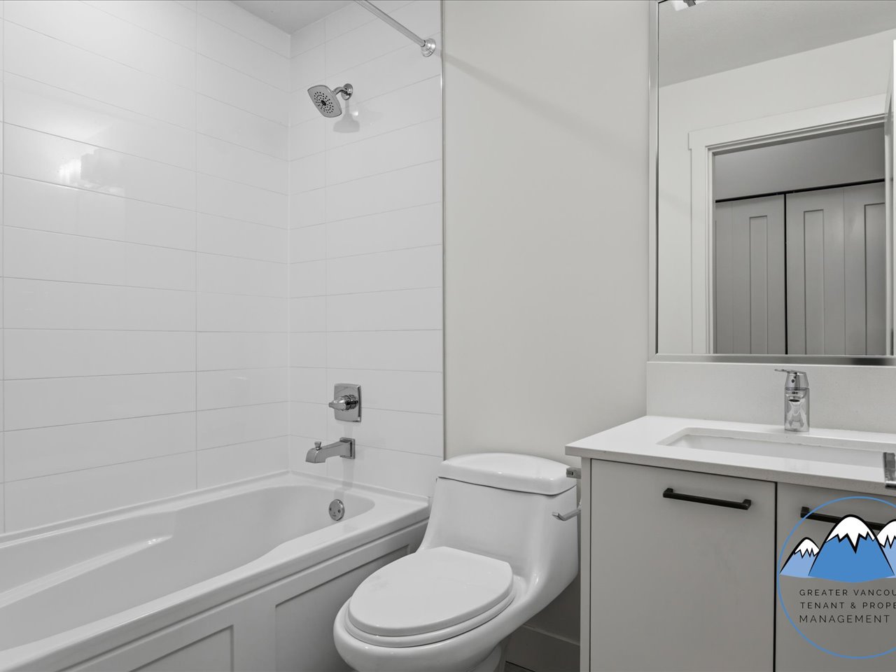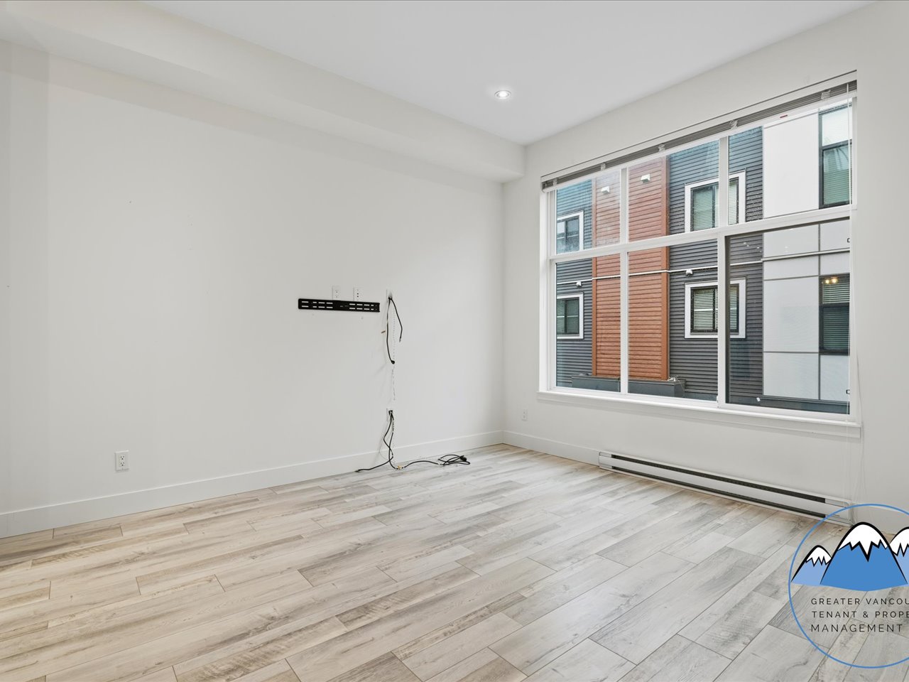 We are offering a bright and modern 2 bedroom / 3 bathroom townhouse featuring 1,261 sqft of living space across three levels. This contemporary home offers 10-foot ceilings, laminate flooring, and electric baseboard heating, creating a spacious and comfortable environment. The kitchen is equipped with fridge, stove, dishwasher, and microwave, and the home includes in-unit laundry for convenience. One of the bathrooms is an ensuite, and the primary bedroom features a walk-in closet. Outdoor living is a highlight of this home, with a large 385 sqft rooftop deck as well as an additional balcony, perfect for relaxing or entertaining.