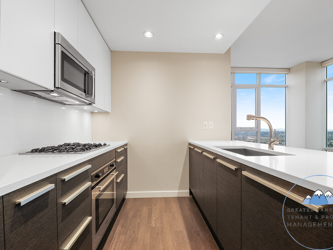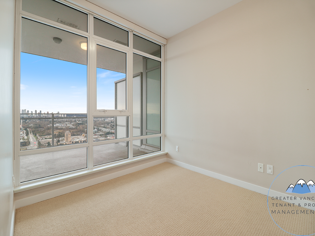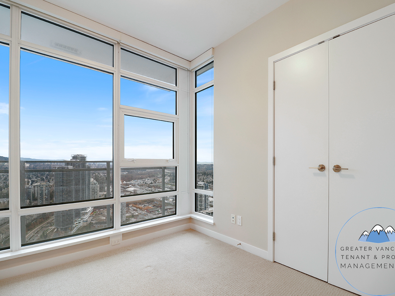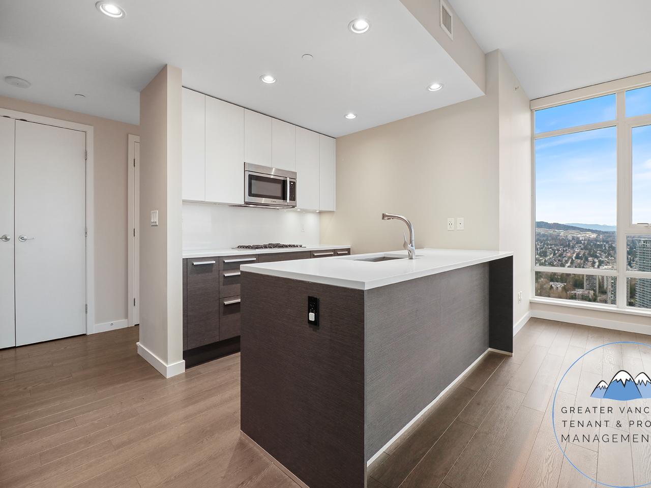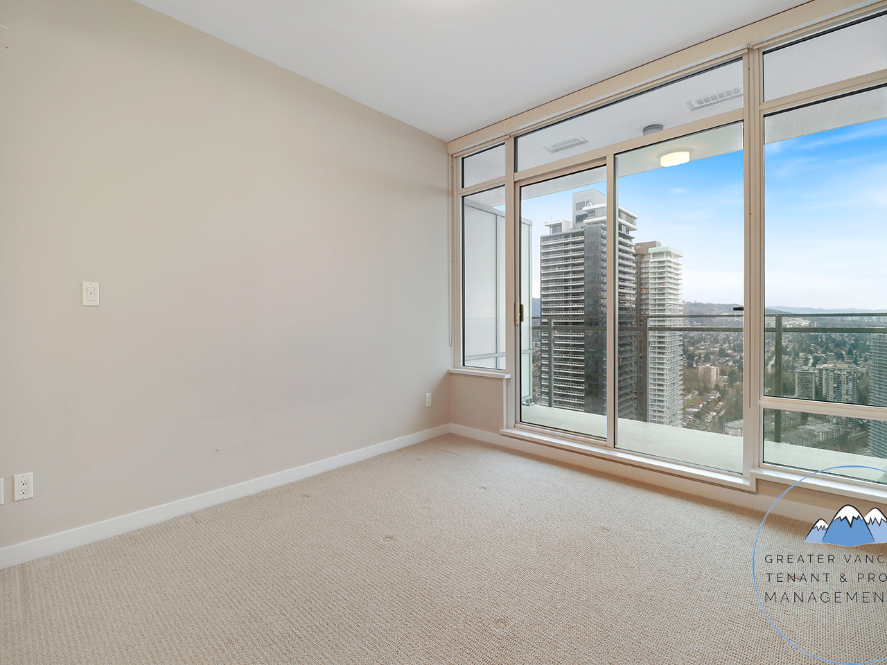 We are offering a 3 bedroom/2 bathroom condo located in the newly developed area of Brentwood. The home is located on the 44th floor with two balconies and amazing panoramic view. Other great features include kitchen appliances (fridge, gas stove, dishwasher, and microwave), laminate & carpet flooring, in suite washer & dryer, and approximately 1017 square feet of living space.