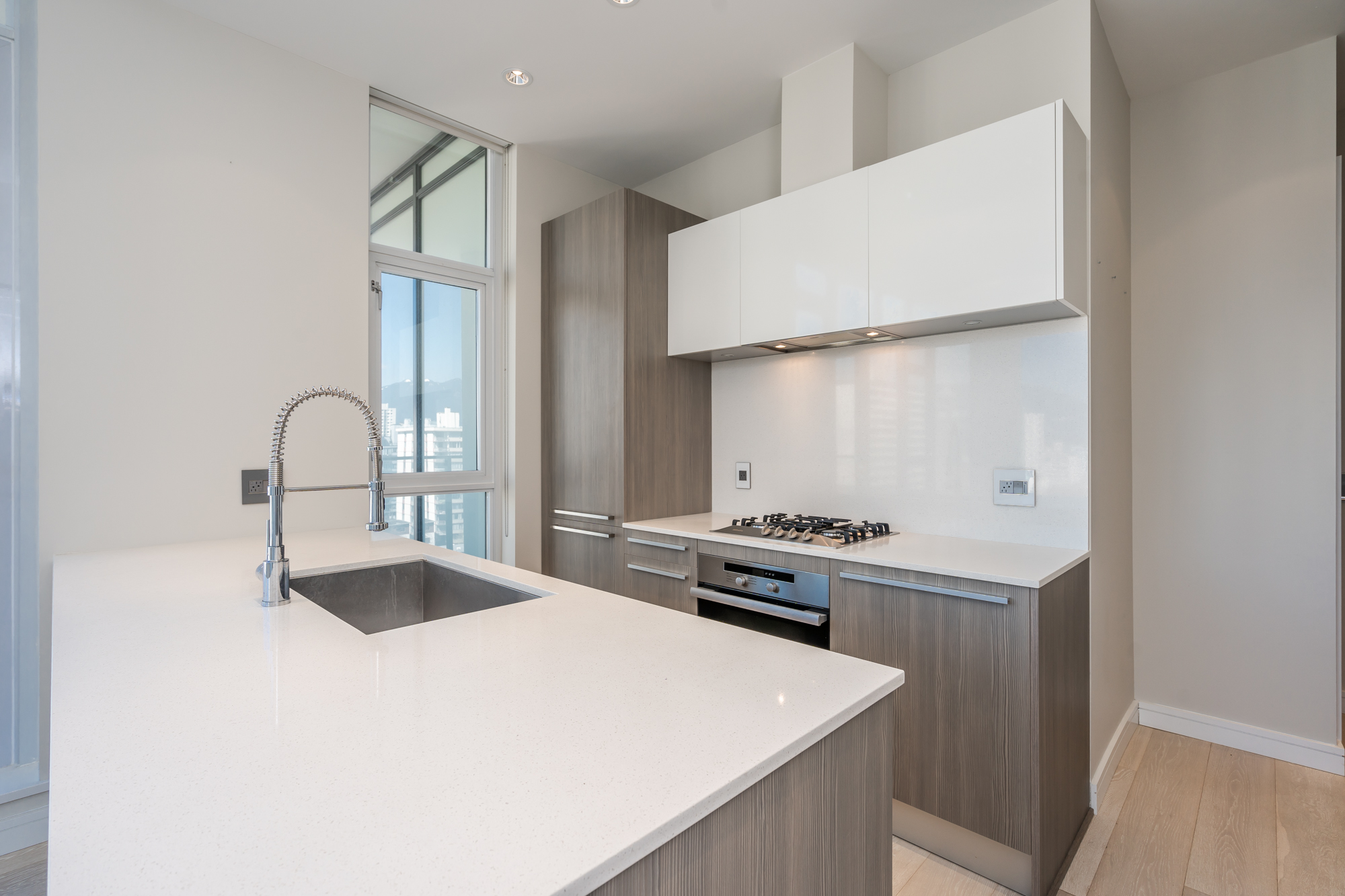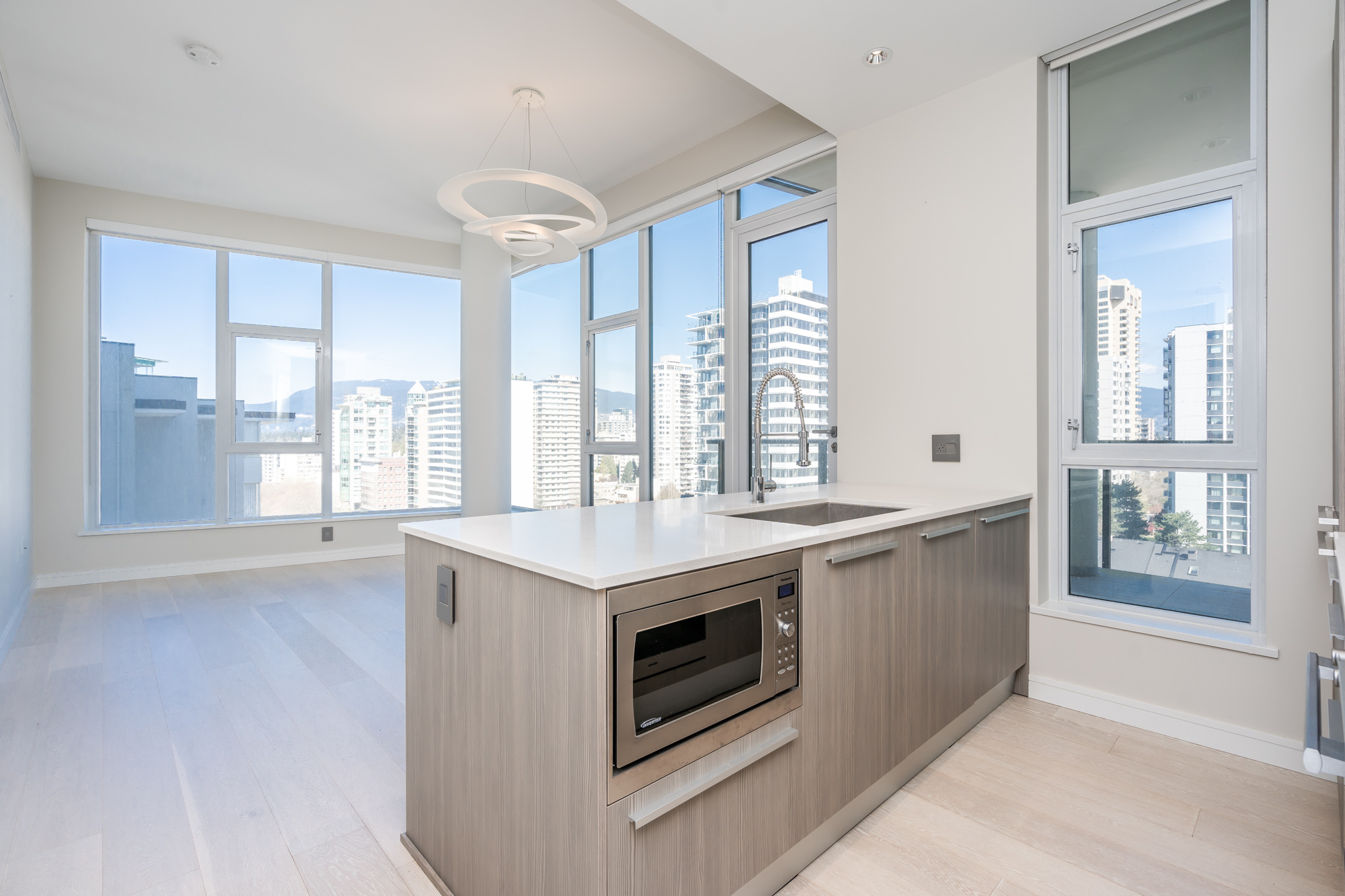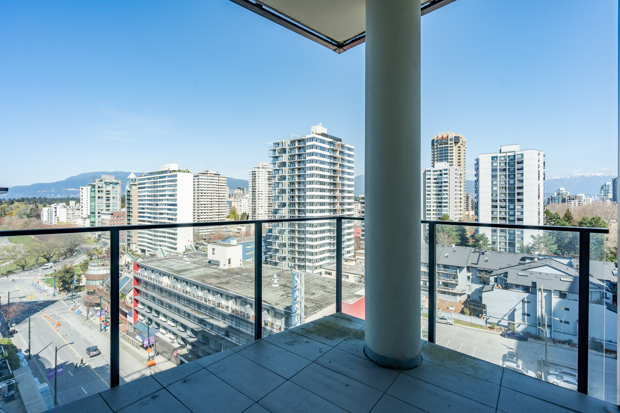 We are offering a modern well kept 1 bedroom + den/1 bathroom condo in Downtown Vancouver. The home is located on the 10th floor with a good sized balcony and a panoramic view of Vancouver, English Bay and the mountains. Other great features include stainless steel kitchen appliances (fridge, gas stove, dishwasher, and microwave), quartz counter tops, laminate floors, in suite washer and dryer, and approximately 625 square feet of living space. There is 1 parking spot, storage locker and bike storage included.