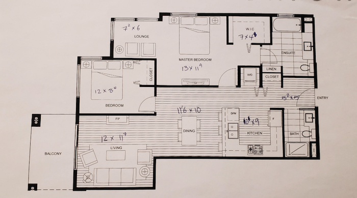 We are offering a spacious 2 bedroom / 2 bathroom condo featuring 975 sqft of comfortable living space. The home includes laminate flooring, a walk-in closet, balcony, in-unit laundry, and a cozy fireplace. The kitchen is equipped with recently renovated LG stove, fridge, dishwasher, and microwave.