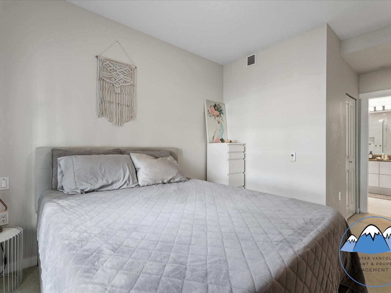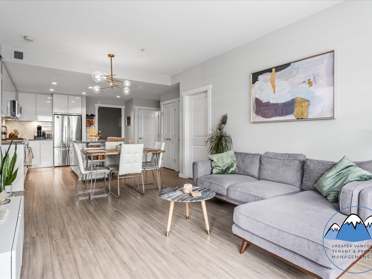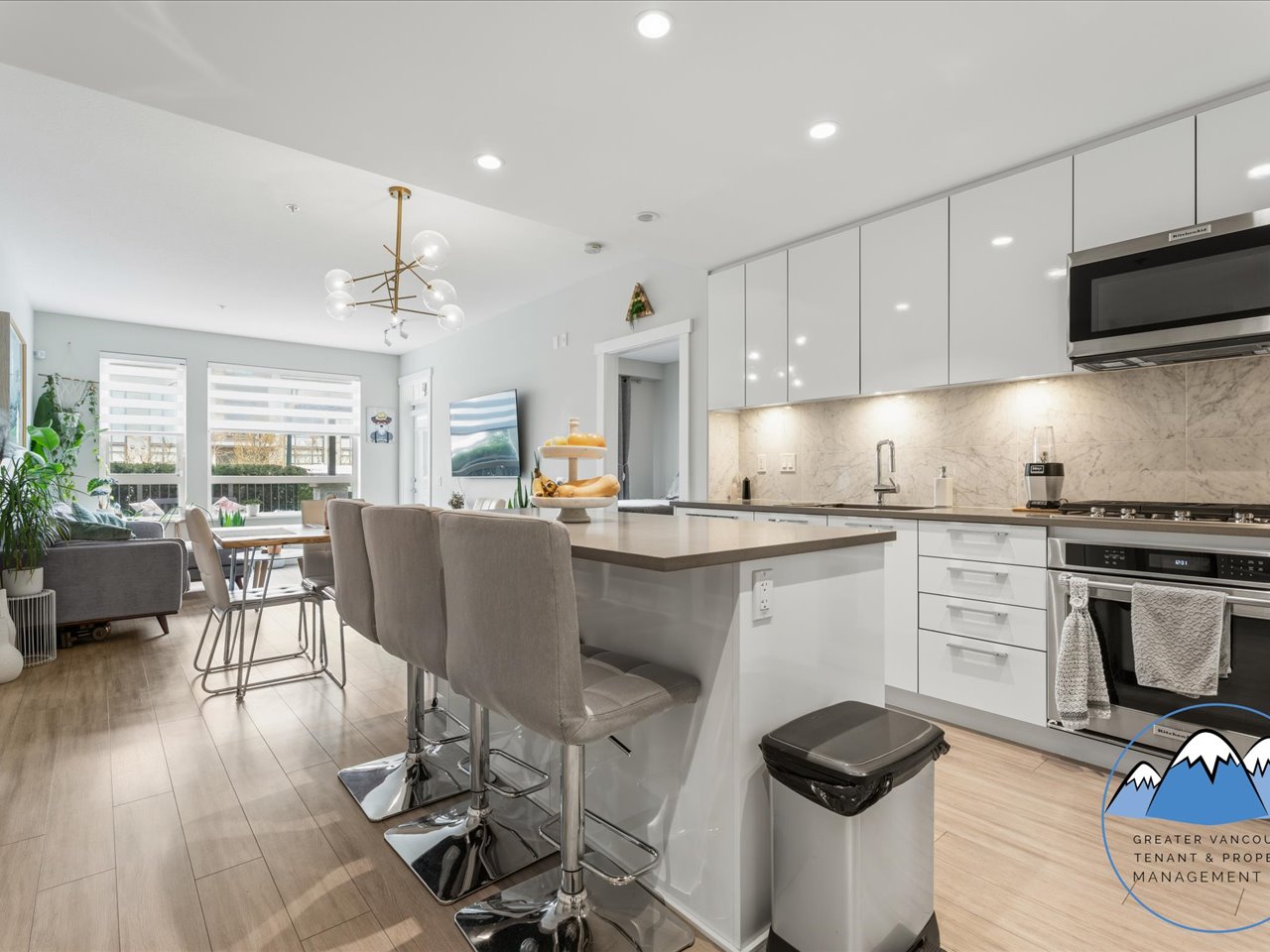 The kitchen is equipped with fridge, gas stove, dishwasher, and microwave, offering both functionality and contemporary finishes. The primary bedroom features a walk-in closet and an ensuite double sink bathroom with electronic bidet toilet for added convenience.